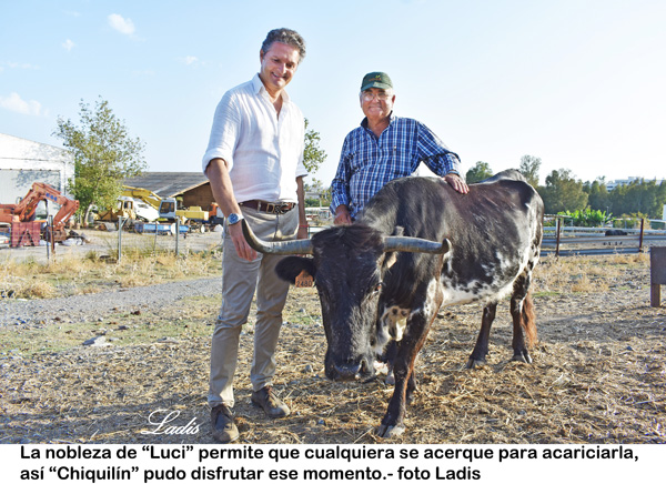 Cuando llegamos nos dijeron que había subido al cerrado para ver a «Luci» la noble vaca brava que crió con biberón al ser repudiada por su madre al nacer.