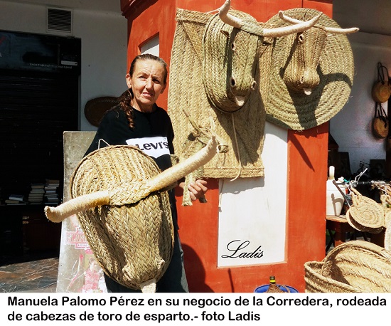 Nos comenta que este negocio ha cambiado mucho, lo mismo que los gustos del público. Ahora el esparto ha dejado de ser un artículo útil (serones para las caballerías, jáquimas, canastos, esteras, soplillos…) para pasar a ser artículos turísticos. Aunque se siguen vendiendo los canastos y esteras, hay otros artículos como las cabezas de toro y los cactus que tienen muy buena salida. Sobre todo las cabezas más pequeñas porque son un motivo decorativo muy simpático y los forasteros las compran como recuerdo de su paso por nuestra ciudad, añade. También nos dice que su público es muy variado. A la Corredera baja mucho turismo tanto nacional como extranjero y se quedan sorprendidos al ver la belleza de esta plaza.»