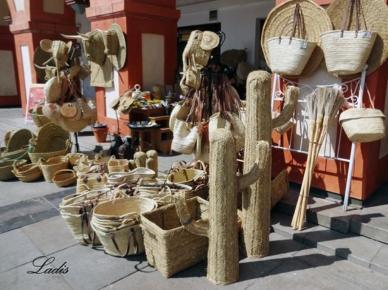 Efectivamente, bajo uno de los centenarios arcos, se encuentra un punto de venta de artesanía de madera, esparto, forja y lienzos de distintas firmas. Es un rincón pequeño que tiene sus «productos» en la calle para que el público vea el material. Allí lleva toda su vida Manuela Palomo Pérez, una mujer extremadamente enjuta pero muy luchadora, de trato exquisito con el público, y que ha sabido, junto a su hermana Loli, campear el vaivén de los duros envites que ocasiona el cambio de los tiempos.