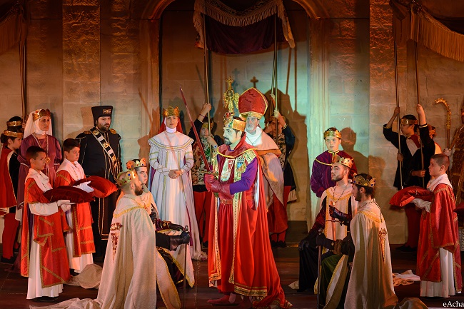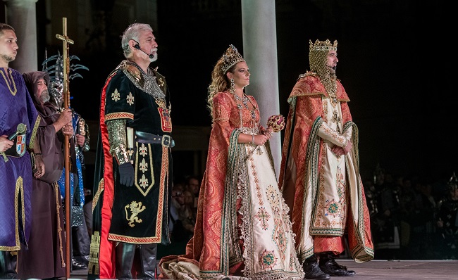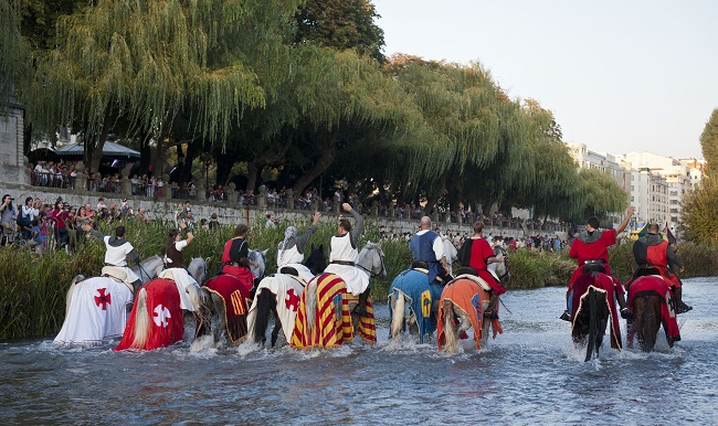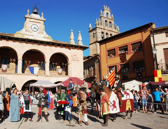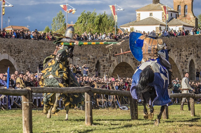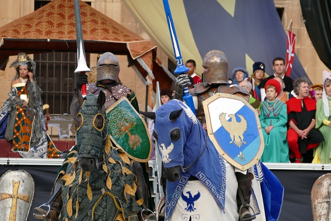 Una veintena de fiestas y recreaciones tienen como escenario la Edad Media y aunque, como en todas las celebraciones, hay una cierta parte bélica, aquí se trata de ambientes más festivos. Mercados de época, juegos malabares, exhibición de aves rapaces, abanderados, pasacalles, conciertos, bailes, venta de productos típicos y artesanía… y por supuesto, justas y torneos, tiro con arco, arcabuzazos, duelos con espada o lanza componen la parte bélica de la fiesta. Pero el aspecto más simbólico es la pacífica convivencia de moros y cristianos, de templarios y cruzados, de reyes y vasallos, de buenos y malos…