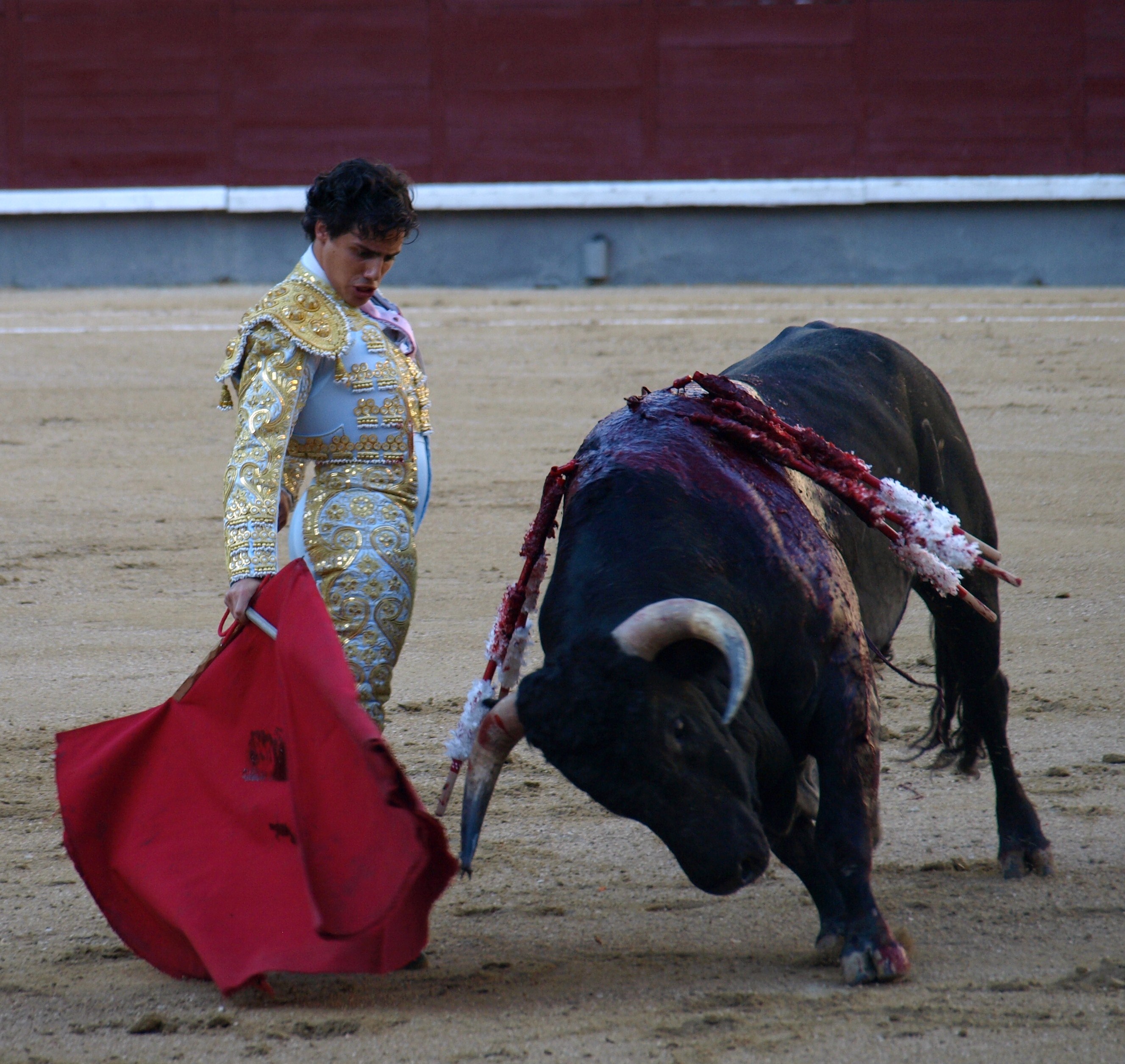 El segundo novillo embistió de salida derrotando y desarmó al diestro Camille Juan trompicándole aparatosamente. En varas derribó al picador de turno y se arrancó por arreones yéndose al bulto cogiendo nuevamente por dos veces al espada francés, que tuvo que ser llevado a la enfermería, donde la apreciaron traumatismo craneoencefálico y una herida en el ojo derecho.