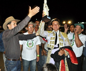 El ganadero Hugo Domingo dio la vuelta al ruedo con el torero Leonardo Coronado.