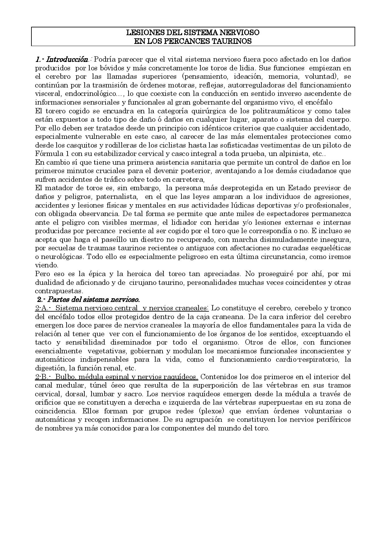 Lesiones del sistema nervioso en los percances taurinos (1/2)