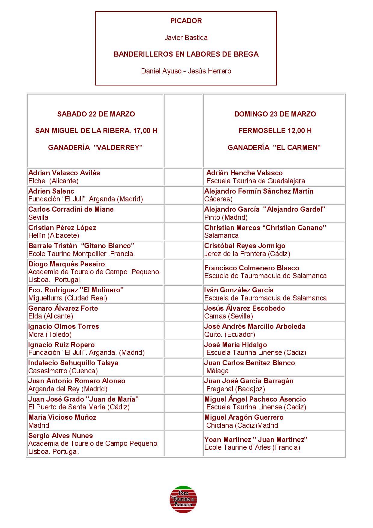 Listado de participantes en el III Bolsín Tierras de Zamora