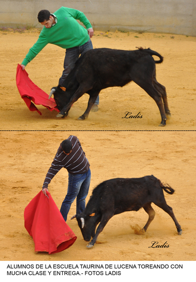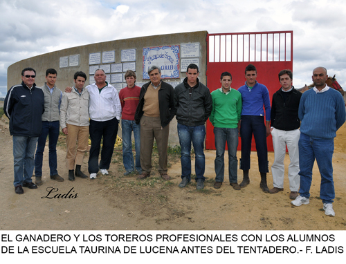 Ni lo desapacible del día, con fuerte viento incluido, pudieron con las ganas y el ánimo del puñado de alumnos de la Escuela taurina de Lucena que, con sus profesores al frente, se desplazaron a la ganadería de Madroñiz para recibir una clase práctica.