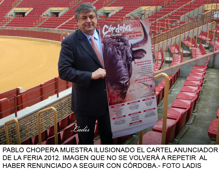 Solo dos ferias ha durado la gerencia por parte de los hermanos Chopera de la plaza de toros de Los Califas. Tras el paso desastroso de Taurotoro, parecía que nuestra plaza tomaría otros aires en manos de esta prestigiosa casa, pero las dos volteretas económicas sufridas (2011 y 2012) han propiciado la salida precipitada de Córdoba. Y es que en la época negra de Taurotoro todo el tinglado se vino abajo por una mala gestión artística de la plaza, y todo quedó bajo mínimos ( léase afición, ganado, prestigio, precios etc..). Ahora la luz al final del túnel que se atisbaba con los Choperas ha resultado ser un brindis al sol.