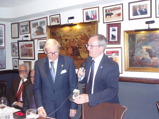 Condujo el acto el encargado del protocolo don Julián Agulla López (Escalera del Éxito nº 230) y, a los postres, en el turno de intervenciones, el vicepresidente don Tomás García-Aranda leyó una poesía dedicada a la memoria de Manolete por ser el año de su centenario. Tras las palabras de presentación de cada uno de los premiados, don Juan Sáez de Retana les dedicó unas palabras de afecto y enhorabuena por los galardones conseguidos y les entregó el “Talismán” con que la Tertulia obsequia a todos los homenajeados.