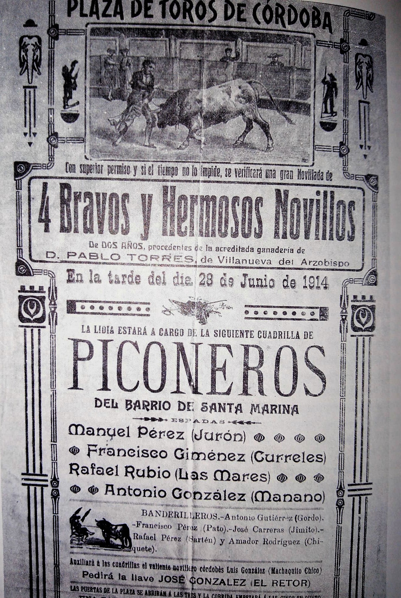 Comenzaba el último tercio del siglo XIX cuando el pueblo cordobés trataba de emular el arte de “Cúchares». En Córdoba por aquella época era frecuente, sobre todo en verano, organizar espectáculos taurinos por los diferentes gremios de la población, pero las “encerronas” de los piconeros eran otra cosa, pues en éstas se condensada todo el “salpichirri» del pueblo llano y sencillo.