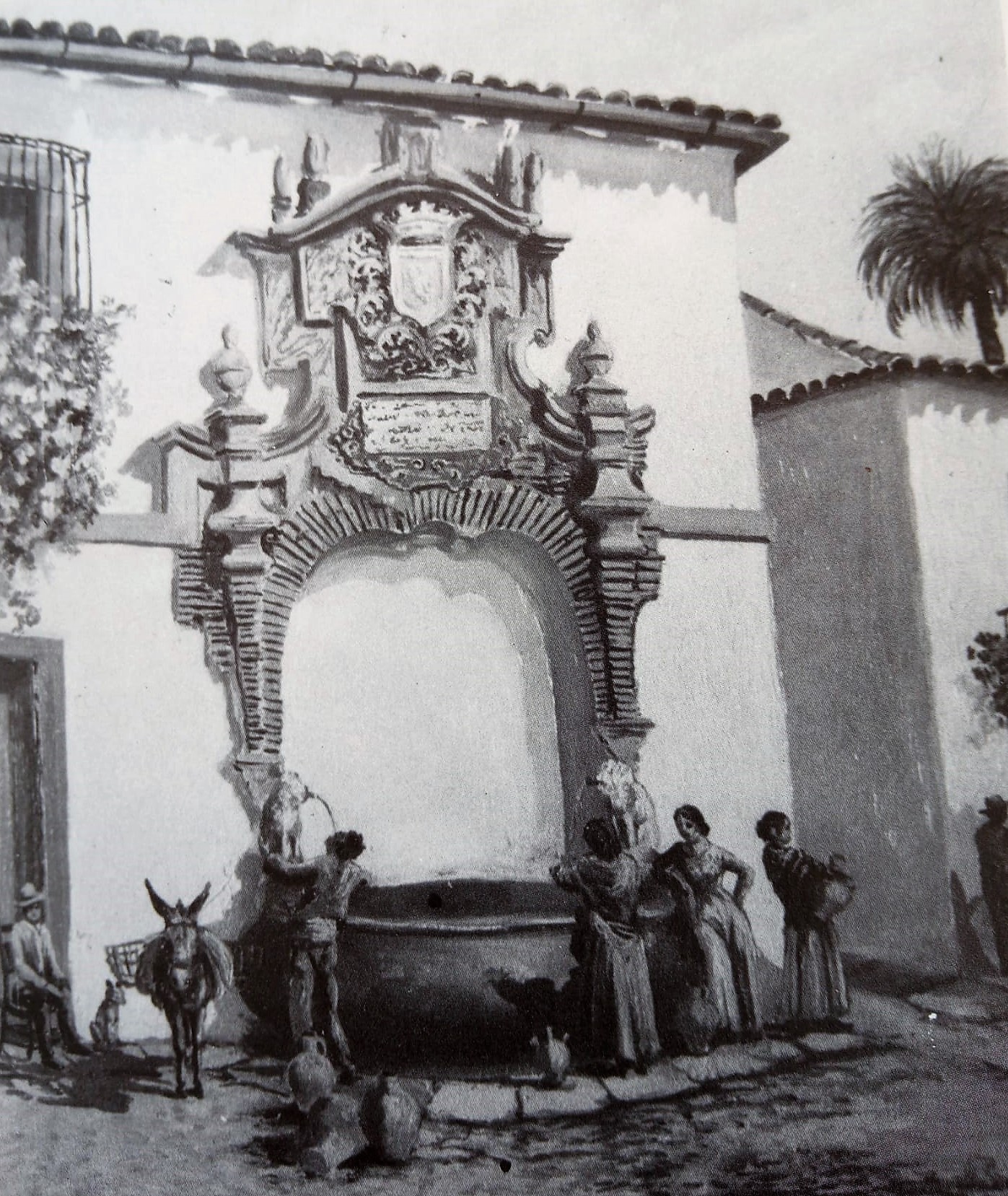 Un rincón de la Plaza de Santa Teresa con su fuente abrevadero en el centro.