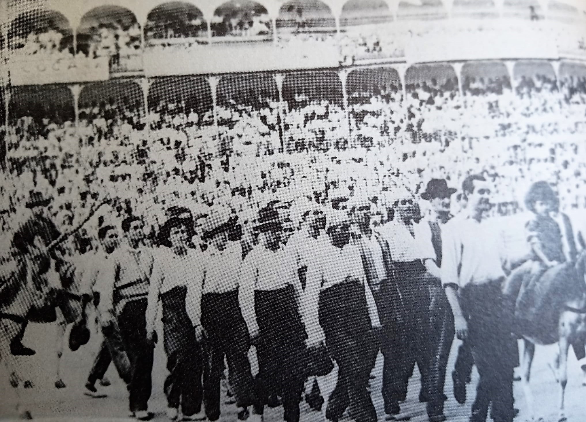 1955. Cuadrilla Piconera llegando al coso de «Los Tejares» en coche de caballos.