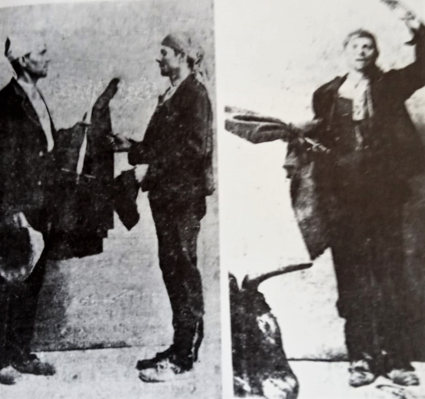 Año 1914. Simulacro de toma de alternativa y de muerte con el espada saludando.