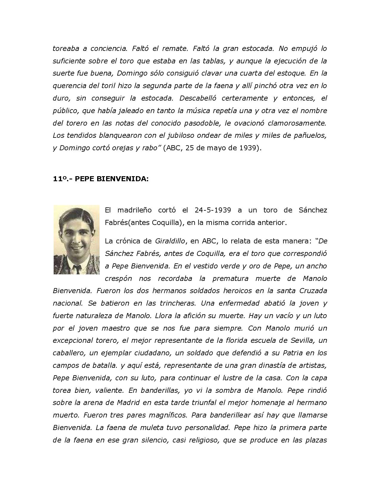 En esta lista se encuentran: Juan Belmonte, Escalera del Éxito 199 Manolo y Pepe Bienvenida, Escalera del Éxito 6 Sebastián Palomo Linares, Escalera del Éxito 28