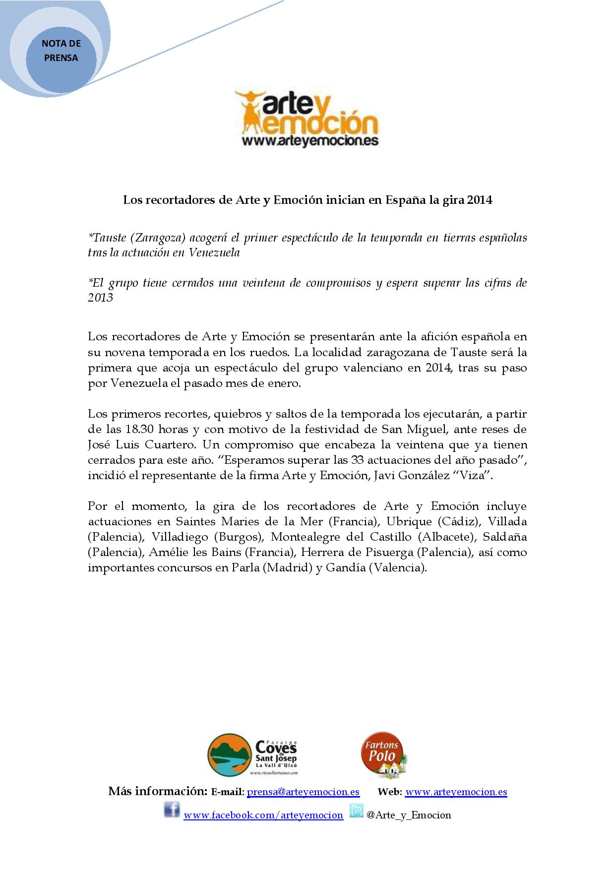Los recortadores de Arte y Emoción inician en España la gira 2014
