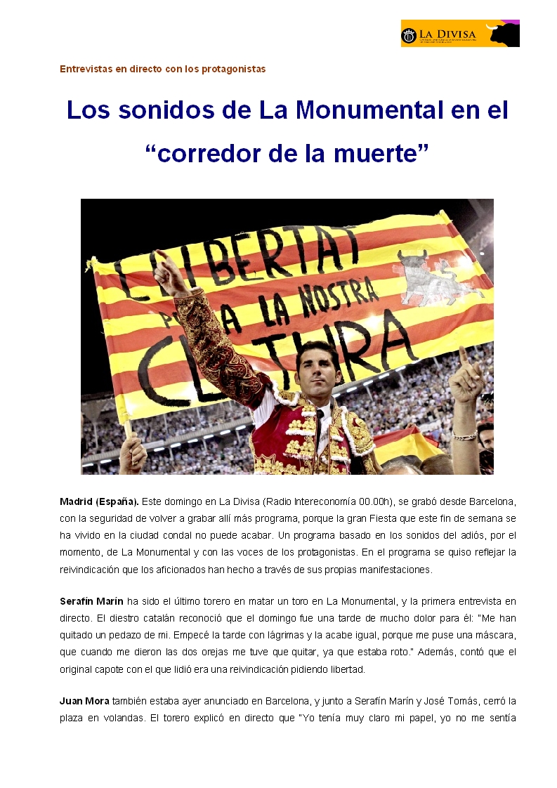 Los sonidos de La Monumental en el «corredor de la muerte»