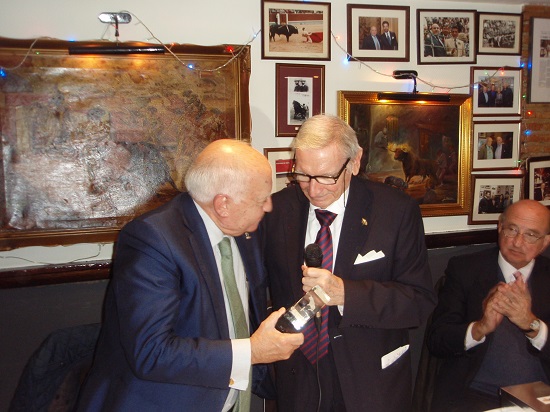 El presidente de “Los Cabales” don Juan Sáez de Retana (Un Romántico del Toreo Rafael Sánchez “Pipo”), disertó sobre las trayectorias de los homenajeados resaltando su gran afición y su ecuánime labor de asesoramiento en la Tertulia de Amigos del Conde de Colombí. Seguidamente les hizo entrega del “Talismán”, distintivo con que se obsequia a todos los homenajeados.