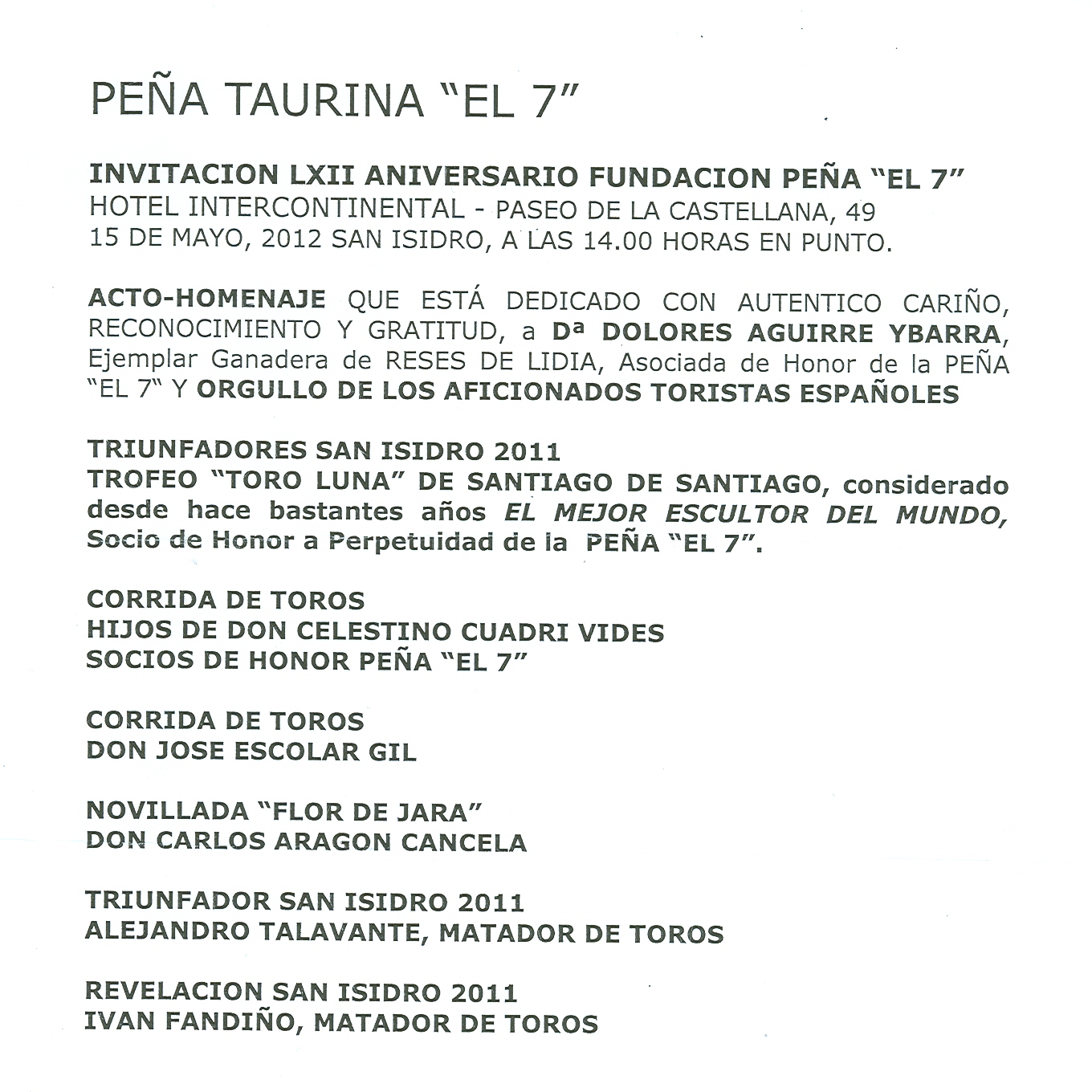 LXII Aniversario Fundación Peña el 7