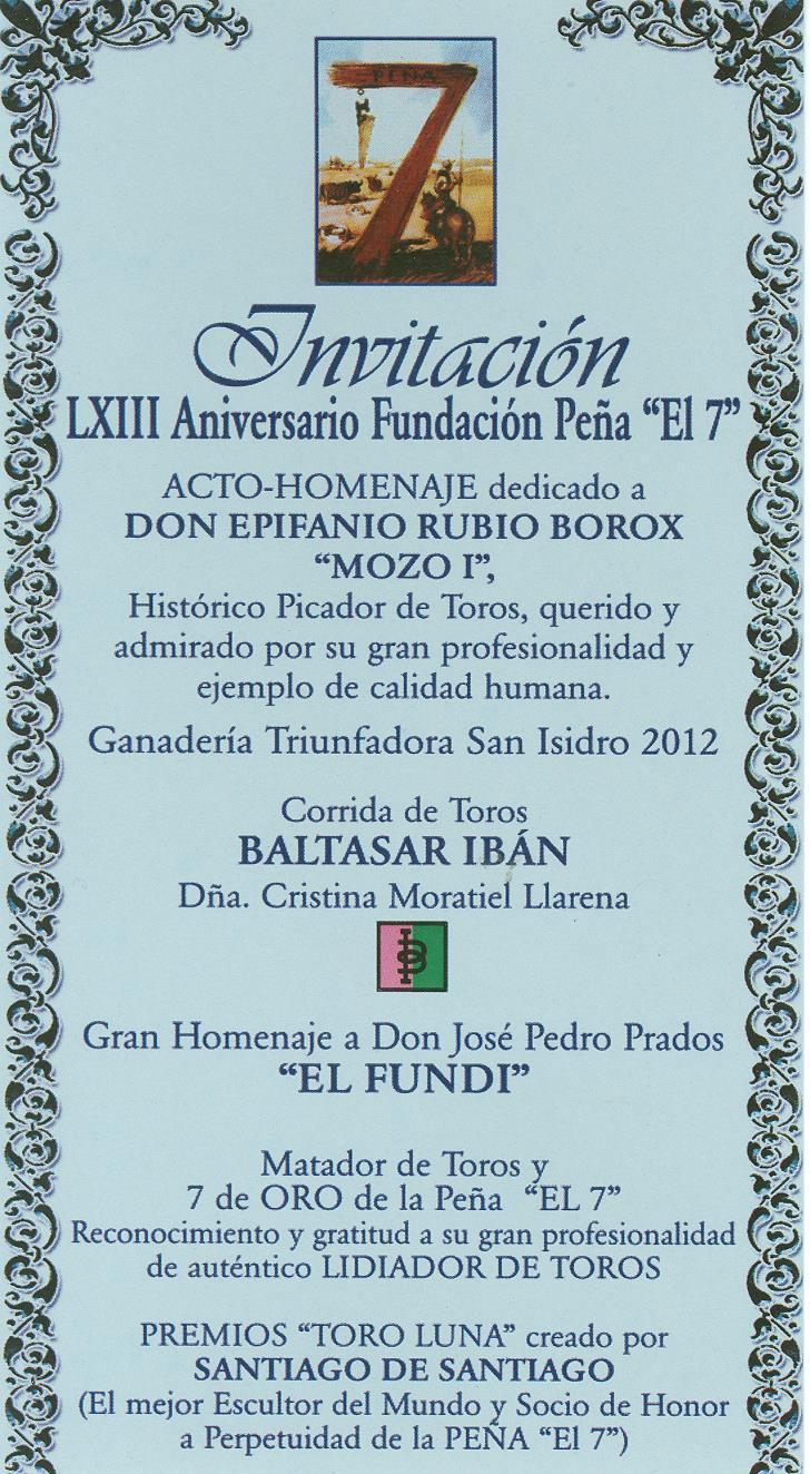 El escultor Santiago de Santiago, Escalera del Éxito 92 y Socio de Honor a perpetuidad de la Peña “El 7”, cerró tan emotivo acto. Entre otras personalidades intervinieron Santiago Martín “El Viti” y el Embajador del Japón en España, el Excmo. Sr. Don Satoru Satoh.