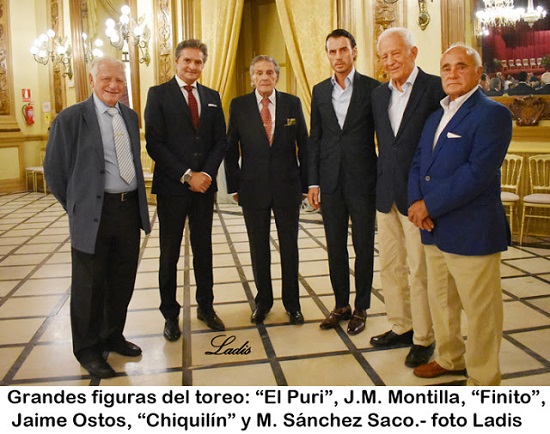 Todo se aprende menos el valor, dijo. En su recorrido por nuestra historia taurina dedicó un capítulo especial a los cinco Califas del Toreo, que ensalzaron la Fiesta cada uno en su época. Contó anécdotas de los toreros cordobeses, algunos de los cuales estaban entre el público (como Montilla, El Puri, Finito, Chiquilín y Manuel Sánchez Saco) a los que elogió.