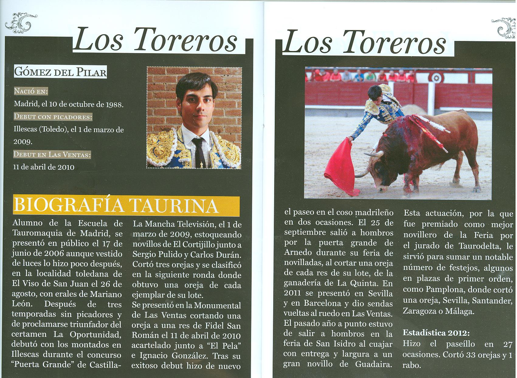 Gómez del Pilar recibió al primero al primero a porta gayola, destacando en un quite original. El novillo llegó muy parado ante la muleta y no fue posible concretar la faena, se lo quitó de delante de pinchazo y estocada. Al cuarto también lo recibió a porta gayola, el novillo desigual en la embestida le impidió igual que el primero concretar la faena. El astado se rompió un pitón y se acabó toda posibilidad de hacer, rematando de una estocada.