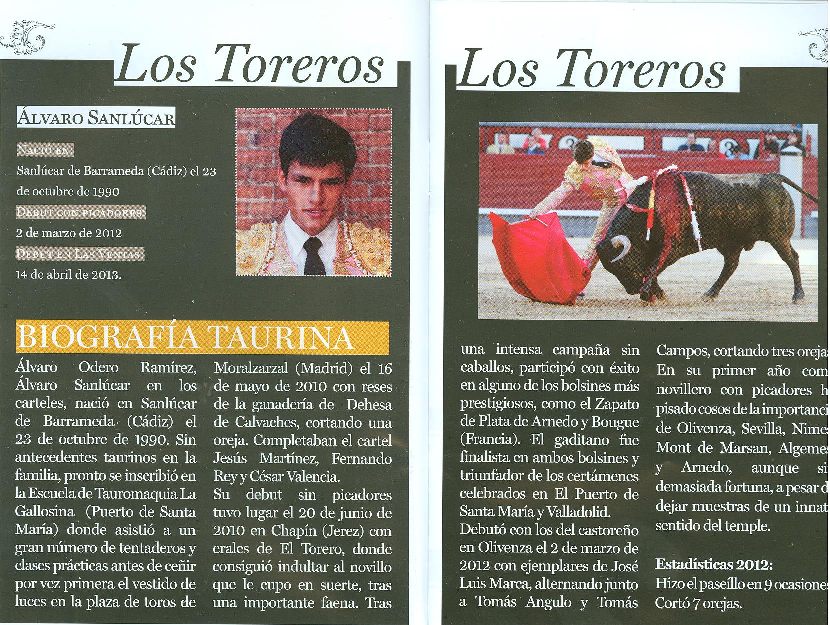 Álvaro Sanlúcar, con el primero flojo de remos y embestida corta que restó calidad a cuanto realizó poniendo torería lo despenó de una estocada y saludó desde el tercio. El cuarto, con genio y cabeceo constante tampoco ofrecía mucho, el diestro fuera de cacho y citando con el pico de la muleta sufrió un desarme. Lo finiquitó de una estocada.