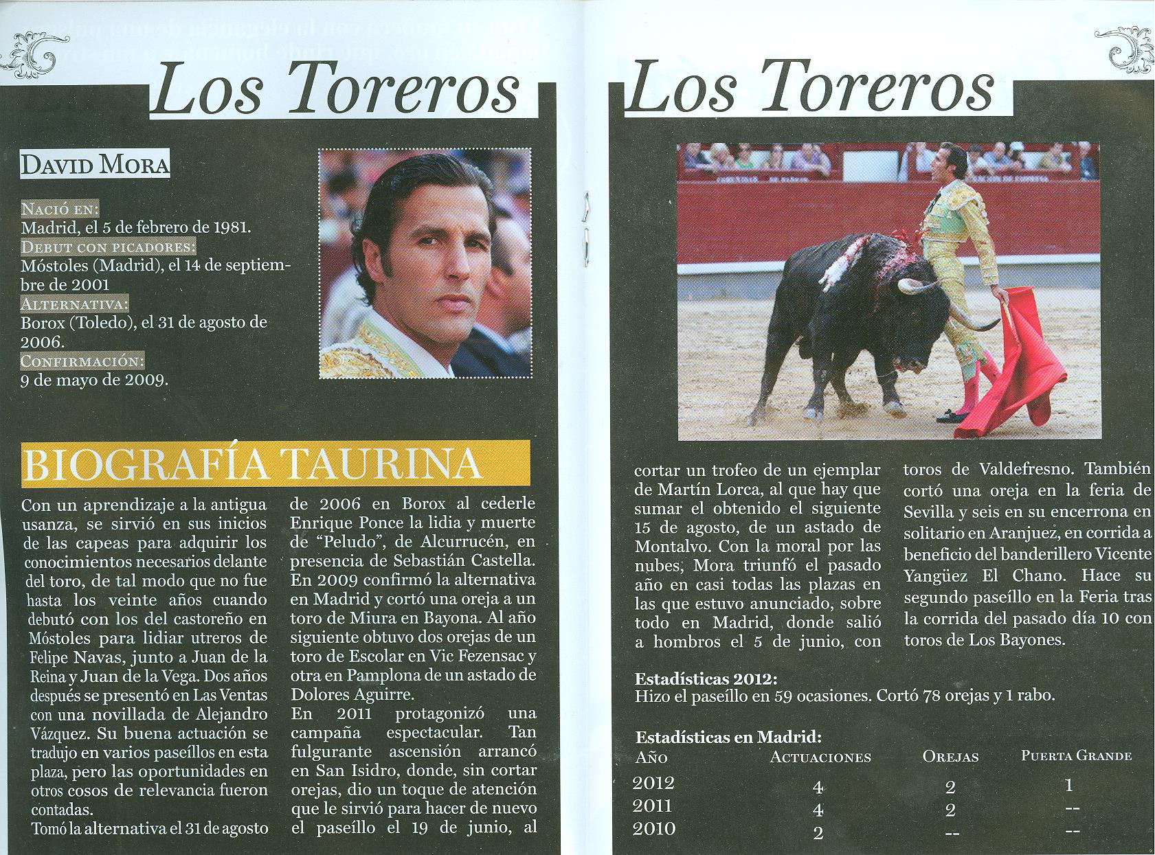 David Mora se lució con el tercero por verónicas y chicuelinas en el quite que se jalearon. Peleó el toro en varas y acudió al capote en el quite con decisión. Ante la muleta tomó varias series de naturales que tuvieron calidad y se cerraron de una estocada atacando con el brazo suelto. El sexto que fue a la cita con el caballo y le pegaron fuerte llegó a banderillas. Empezó la faena de rodillas, la continuó de pie aguantando la descompuesta embestida del toro que dobló de una estocada.