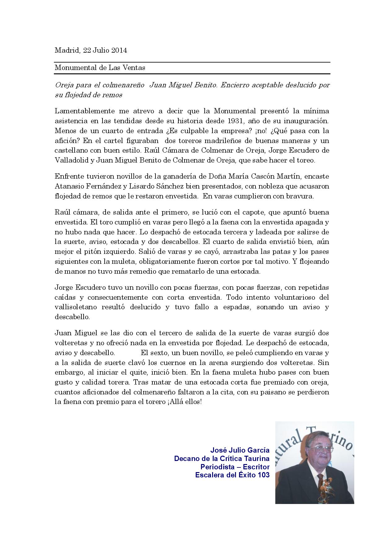 Madrid, 22 Julio 2014. Monumental de Las Ventas