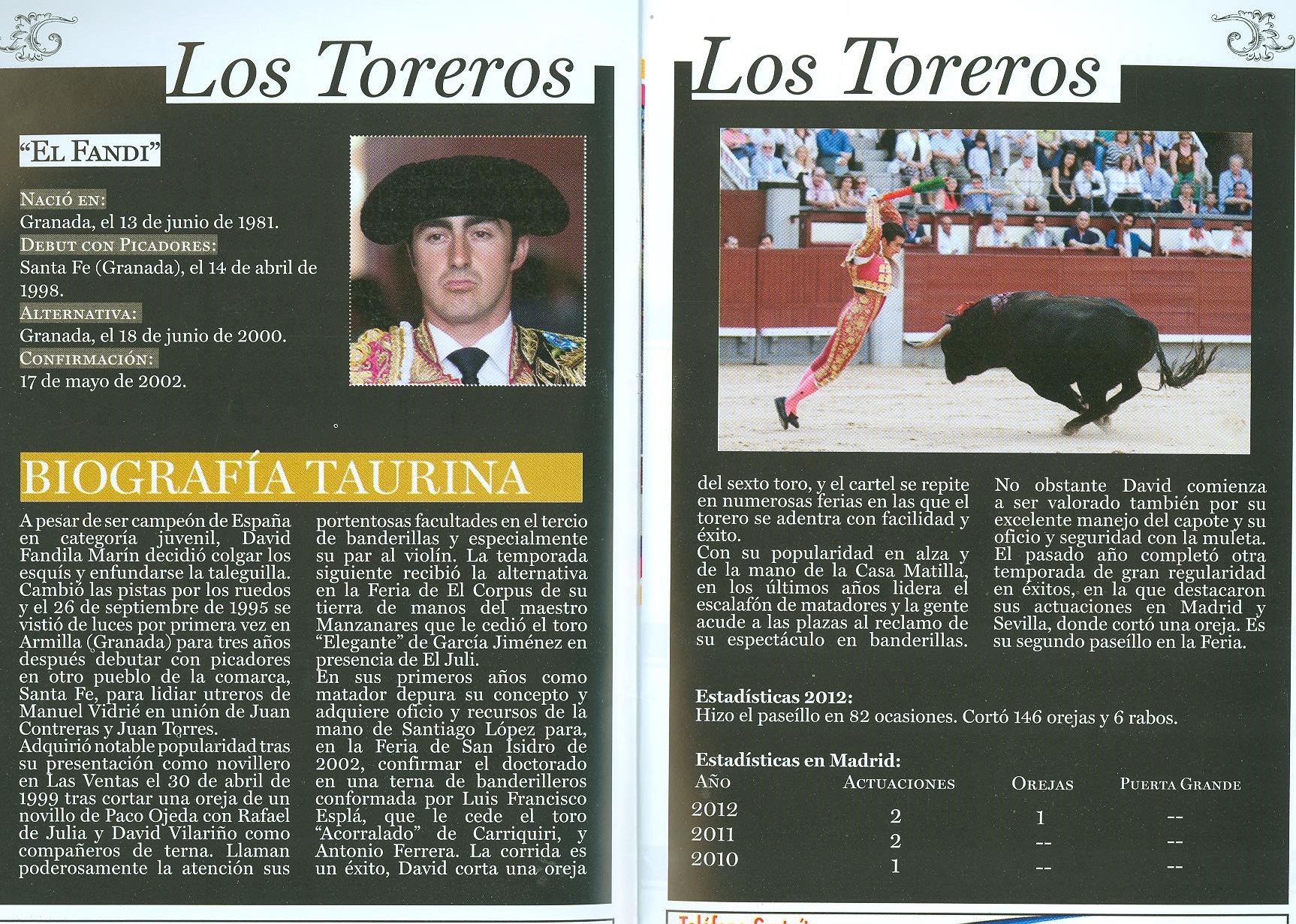 David Fandila «El Fandi» en su habitual alarde de facultades estuvo fácil y resolutivo con sus enemigos, entregado con alardes en banderillas al modo de ejecutar y clavar. Atacando con el brazo suelto dejó un pinchazo y una estocada que refrendó con el descabello. El cuarto, descarado de cornamenta lo banderilleó en la suerte de «la moviola» y «el violín» con derroche de facultades. Inició la faena con derechazos de rodillas, después con pases sin cruzarse el toro se quedó corto de embestida. Una estocada con el brazo suelto a toro arrancado puso final a su tarea.
