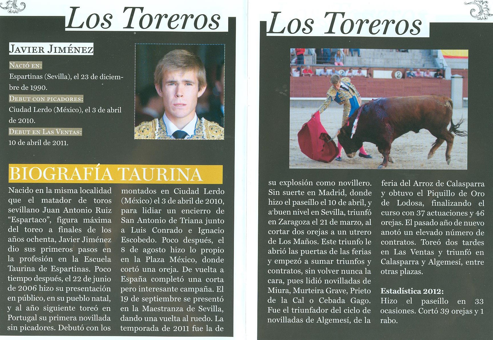 Javier Jiménez se las vio con el primero al que toreó bien con el capote y con la muleta con pases sobre ambas manos ejecutados con clase y mando. Atacó con la espada con el brazo suelto y jugó la muleta para dejar una estocada que fue suficiente. Al cuarto lo recibió por verónicas de buen trazo. El novillo llegó a la muleta sin castigo suficiente en varas y con embestida descompuesta. Se lo quitó de delante atacando con el brazo suelto dejando una estocada que fue suficiente. Saludó desde el tercio.