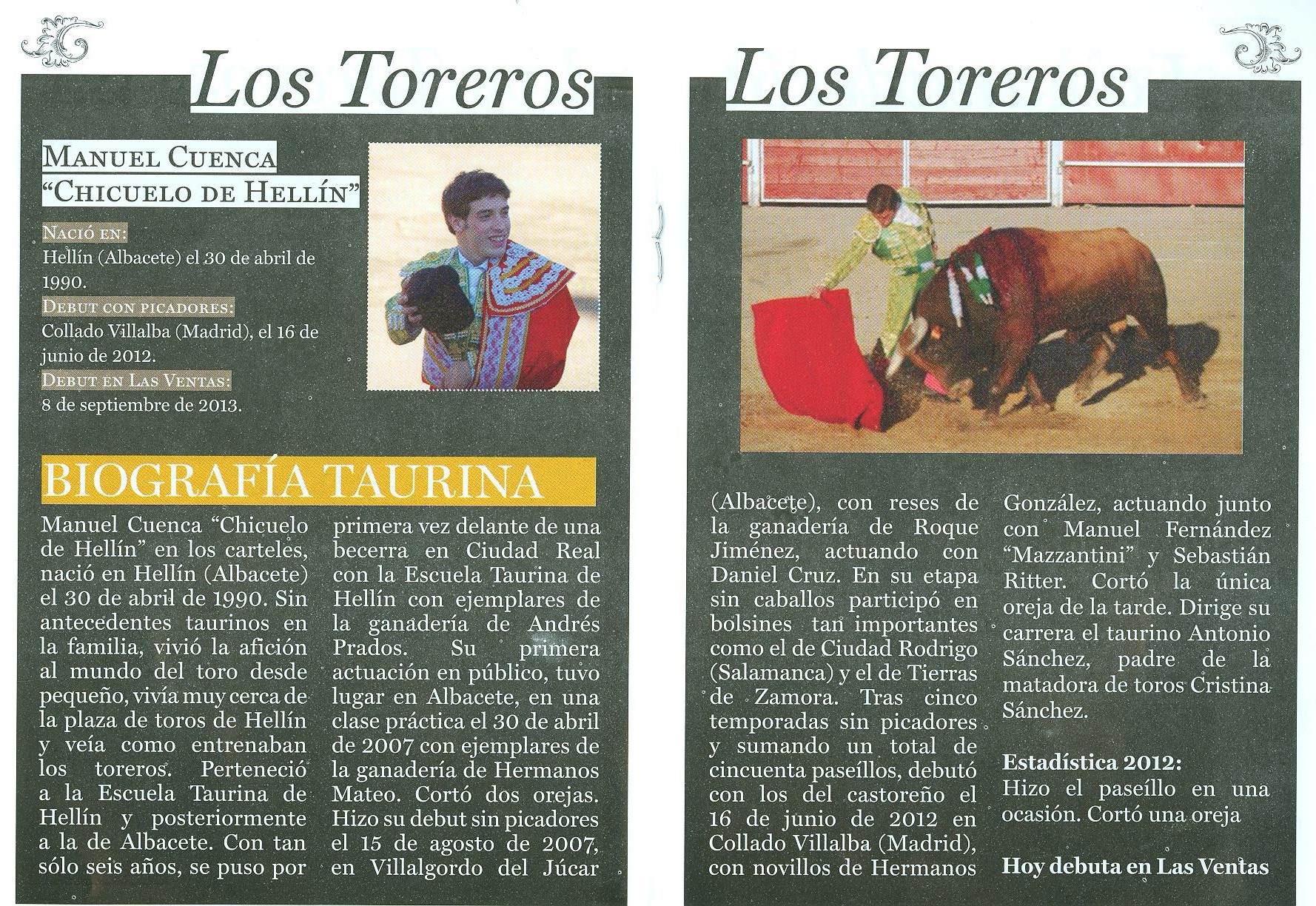 Con la entrada acostumbrada de estos últimos meses en Madrid ocupada la plaza solo en un cuarto del aforo o menos, lo que supone un síntoma alarmante de falta de afición. Se corrieron cuatro novillos de Fidel San Román encaste Villamarta discretamente presentados con fuerza y casta justa que dieron juego deslucido. Los corridos en tercer y cuarto lugar pertenecían a la divisa de Mollalta, de origen Torrealta que no han desentonado del juego general de la otra casta quedándose en la arrancada y echando la cara arriba. En cuanto a los novilleros Raúl Rivera que ya había toreado en el ruedo madrileño en la temporada de 2011, Jesús Chover en el año 2012 y Manuel Cuenca «Chicuelo de Hellín» hizo en esta fecha del 2013 su presentación en Madrid.