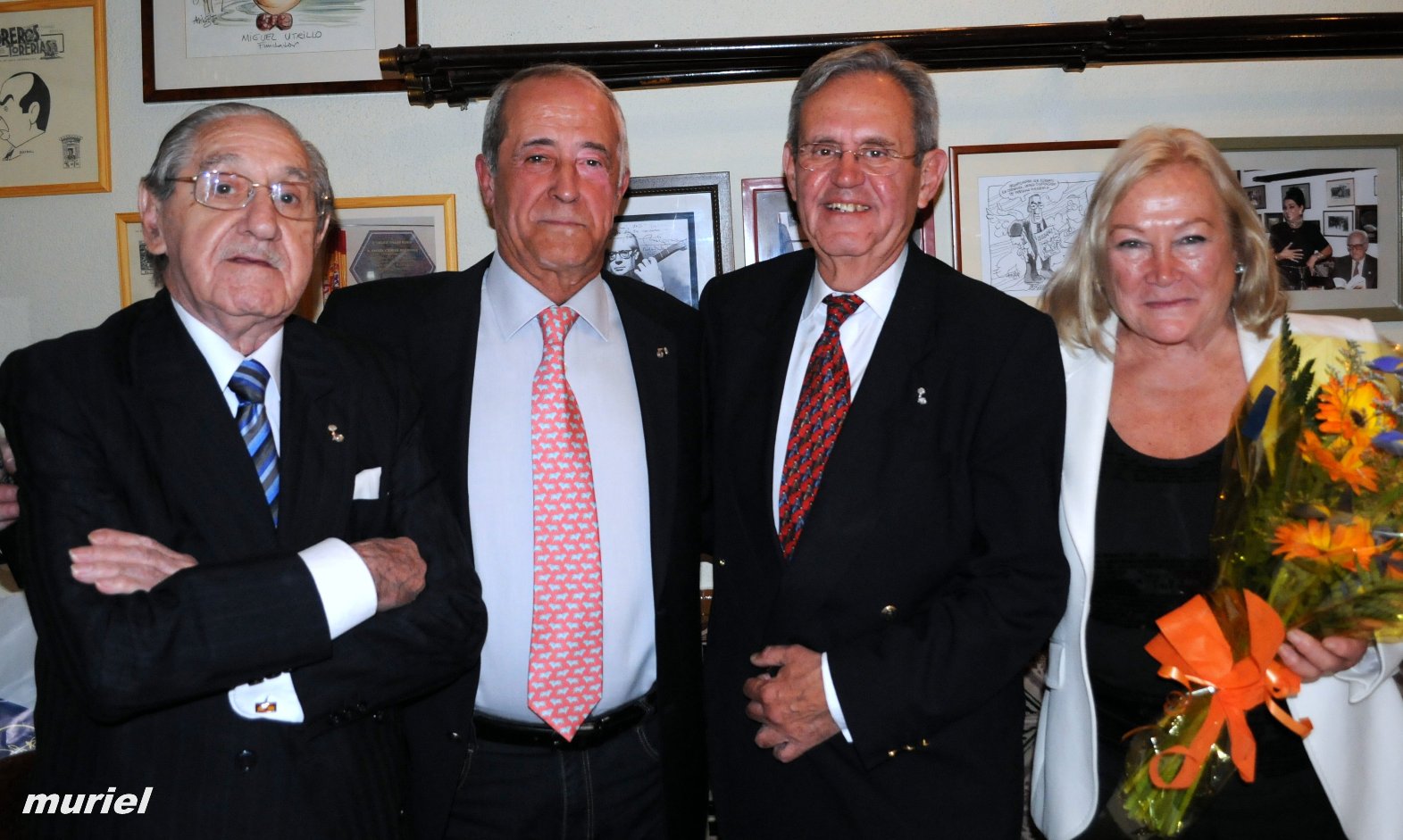 Finalmente, el presidente de la Tertulia de Amigos del Conde de Colombí, José Mª Moreno Bermejo, impuso a D. Enrique Sierra Gil el emblema: “Madroño de Albero”, agradeciendo al homenajeado y a su esposa su presencia.