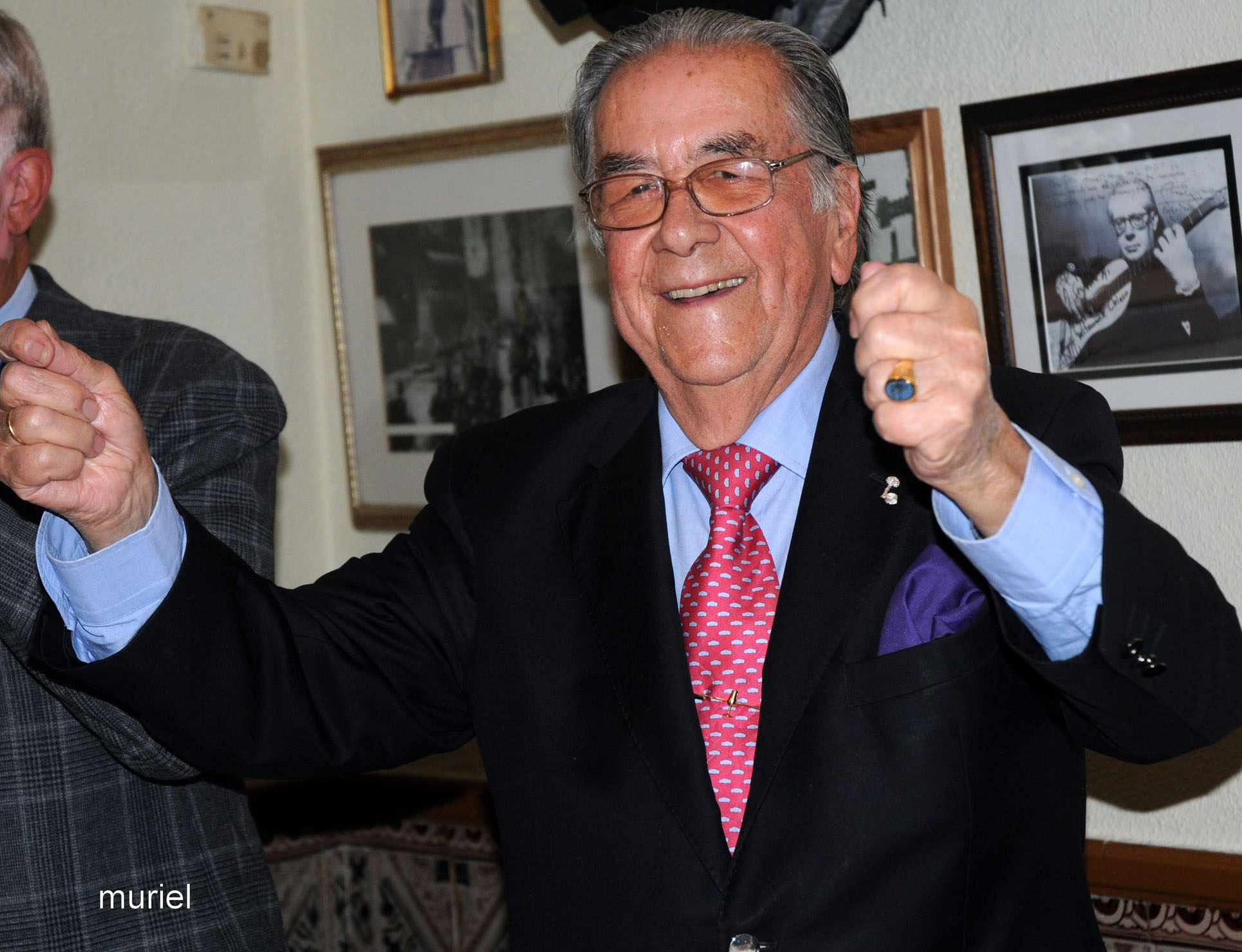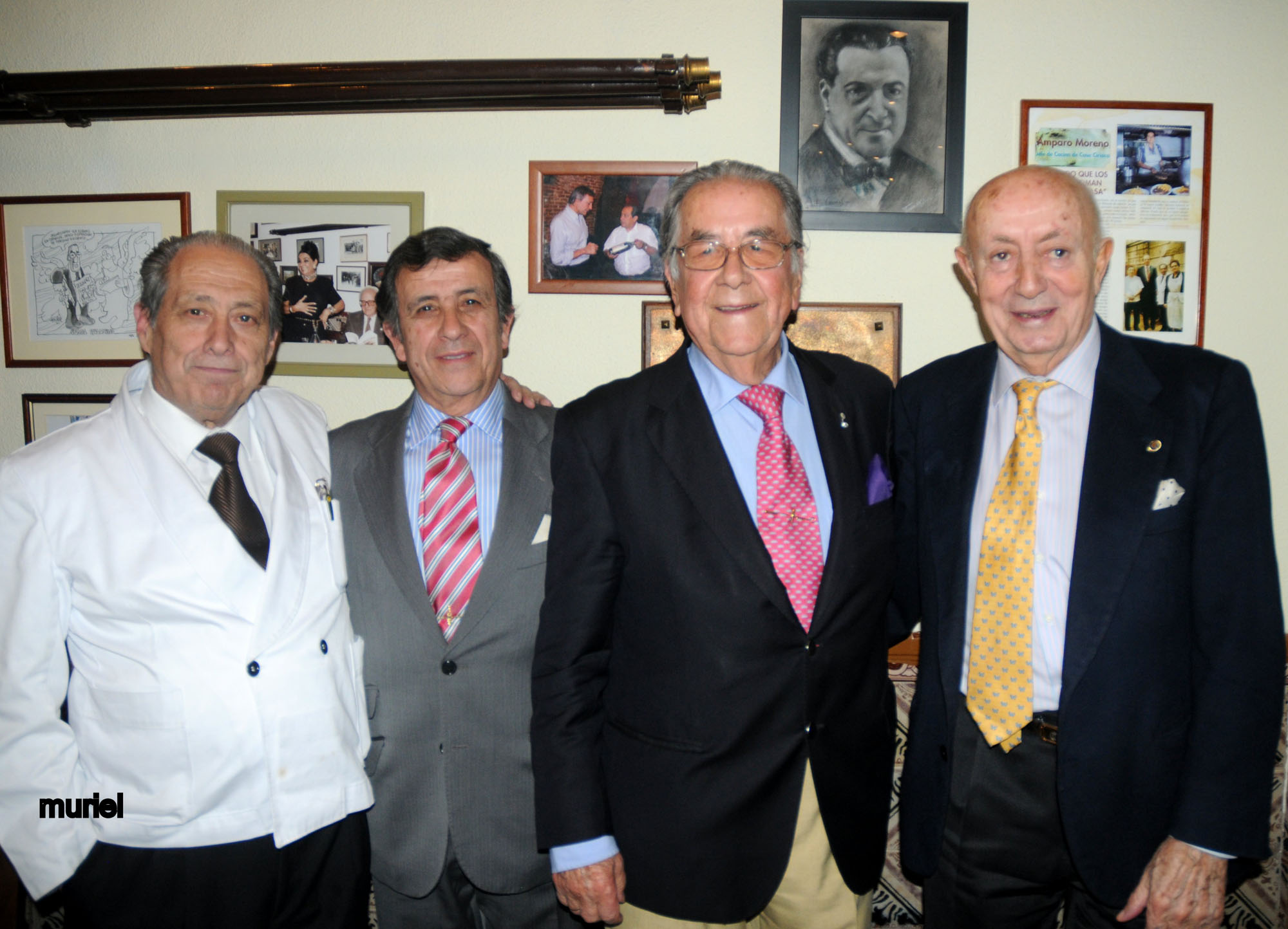 El presidente de la Tertulia de Amigos del Conde de Colombí y Escalera del Éxito 123, D. José Mª Moreno Bermejo, presentó al homenajeado como una persona cercana, entusiasta y como un gran aficionado a la Fiesta, resaltando que en su restaurante imparte magisterio del arte taurino y del de la amistad. D. Salvador Sánchez Marruedo alabó las virtudes de Don Paco, y le recordó la amistad que mantuvo con su padre “El Pipo”, en tiempos pasados. D. Vidal Pérez Herrero (Escalera del Éxito 96) alabó las virtudes de Don Paco, su excelente y continuo buen humor; “tu eres un eximio hombre de barra”, dijo; y le recordó a sus amigos Maxi y Antonio. D. Lucio Blázquez, el inefable propietario de “Casa Lucio”, dijo considerarse como hermano de Don Paco, y rememoró las vivencias que juntos han compartido durante sus muchos años de amistad; “tu bondad y tu generosidad son muestras de tu excelente carácter”, dijo. D. Carmelo Espinosa, propietario de los restaurantes madrileños “La Giralda”, denominó a Don Paco como clásico y genuino tabernero, muy rico en amigos y con un maravilloso don de gentes. D. Juan Saez de Retana, alabó las virtudes de “este jerezano, joven con 87 años, que derrocha talento y cultura, y que es licenciado en amistad”, dijo, y le dedicó un sentido. “viva la madre que te parió”. D. Miguel Flores (Escalera del Éxito 35) destacó la sapiencia de Don Paco en el folclore y el toreo; “eres un fenómeno”, le espetó.