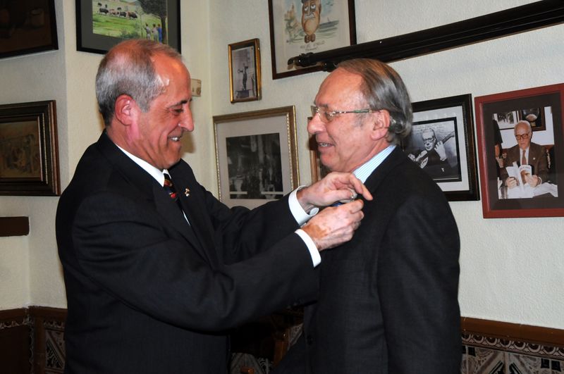 Tras la intervención del homenajeado, el presidente de la Tertulia, D. José Mª Moreno Bermejo impuso a D. François Zumbiehl el emblema de la Tertulia, “Madroño de Albero”, y dio por terminado el acto, anunciando la próxima convocatoria para el martes 31 de enero, en el que se ofrecerá un homenaje a D. Beatriz Badorrey Martín. Una feliz Navidad para todos y los mejores deseos para el año próximo.