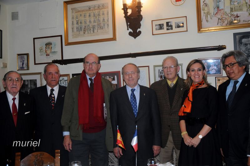 En el turno de intervenciones, tomó la palabra D. Williams Cárdenas, presidente del Círculo Internacional de Tauromaquia, alabando la labor que el homenajeado está prestando a la “Coordinadora Proyecto UNESCO”; agradeciendo su amistad, limpia y enriquecedora; sus conocimientos y generoso trabajo. “Tu labor en el Observatorio Francés de la Cultura Taurina ha sido básica para que el Gobierno francés haya declarado la Tauromaquia como Patrimonio Cultural Inmaterial de los franceses”; dijo. Dª. Beatriz Badorrey, directora del “I curso de formación universitaria para Presidentes taurinos”, profesora de la UNED, gran aficionada, expresó su afecto y admiración por François, su agradecimiento por la ayuda que regala a la “Coordinadora Proyecto UNESCO” y por el ejemplo que su comportamiento y afición prestan a la Tauromaquia y a sus aficionados. D. Vidal Pérez Herrero (Escalera del Éxito 96) dijo que era un honor para él y para los contertulianos el poder gozar de la amistad de tan recto aficionado; leyó dos sumarios de los que el homenajeado ha escrito para la Agenda del 2012, en los que se reflejan los conocimientos que tiene François Zumbiehl sobre la cultura taurina, y la afición que desprenden. D. Juan Sáez de Retana alabó las virtudes del hombre; “mi pálpito me decía que eras buena gente, y hoy tu trato así me lo ha confirmado”, dijo. Felicitó a los reunidos la Navidad y expresó sus mejores deseos para todos durante el año 2012. D. Javier Marqués, secretario de la Asociación Taurina Parlamentaria, expresó su agradecimiento por lo que el homenajeado está haciendo por la Tauromaquia en Francia, por su ejemplo y por su amistad; indicó que espera que su partido, el Partido Popular, sepa estar a la altura de las circunstancias para no defraudar a los aficionados y dignificar la Tauromaquia en España.