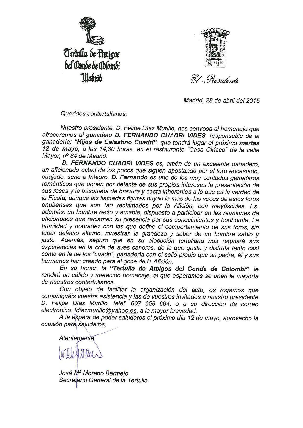 Madroño de Albero para al ganadero D. Fernando Cuadri Vides (Escalera del Éxito 99)
