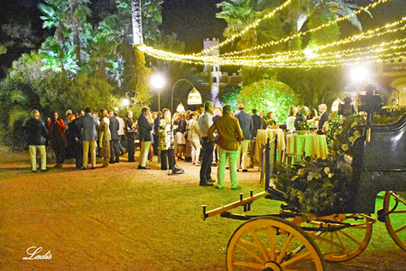 Y han venido de toda España y al entrar les han recibido jinetes a caballo y dos guapas chicas, vestidas de faralaes (Begoña y María) que entregaban a las señoras una flor y un abanico.