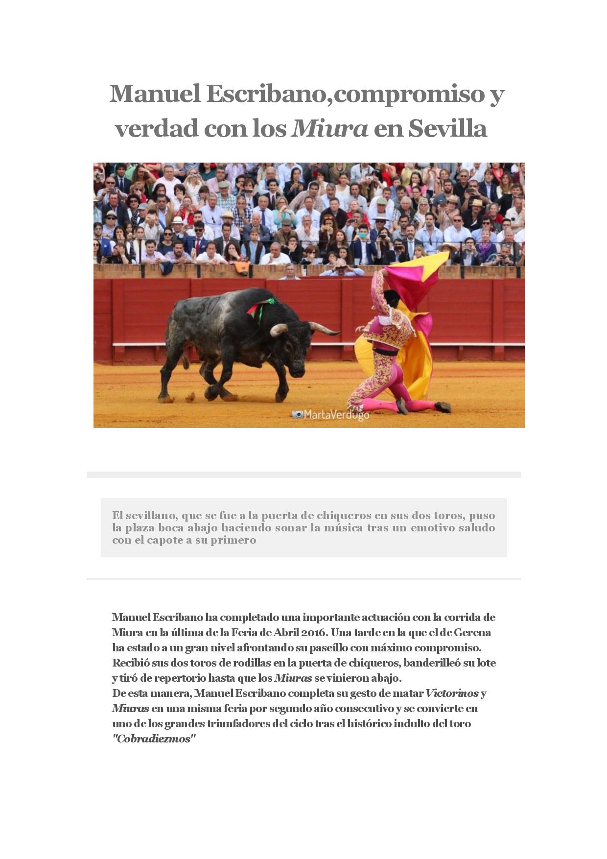 Manuel Escribano,compromiso y verdad con los Miura en Sevilla