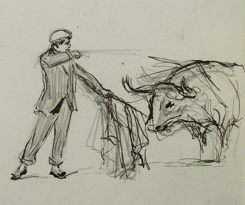 Benlliure, como era su costumbre, fue a la plaza cargado con su cuaderno de apuntes, y realizó numerosos durante la faena de su buen amigo Machaco, en los que captó los momentos más brillantes de la faena, como refleja el apunte que se reproduce.