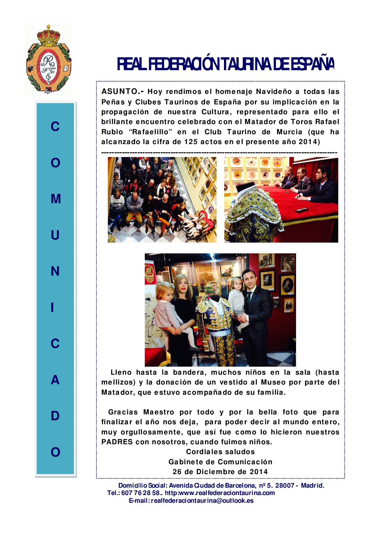 Martes Taurino celebrado en el Club Taurino de Murcia con la presencia del Matador de Toros Rafael Rubio `Rafaelillo´