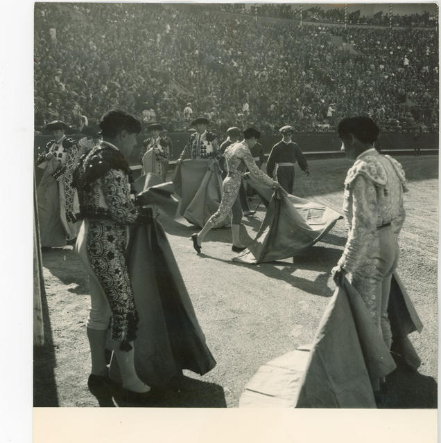 “Miguelañez”, un grueso banderillero que no veía por un ojo y que toreaba con largura y sabor con el capote a una mano y apoderaba a una rejoneadora, Amelia Gabor , que se entrenaba con un toro amaestrado al que llamaba “Felipe”, no sé si con doble significado. En Barcelona, en un festejo de noveles, actuó un becerrista que llevaba la cabeza rapada a lo Yul Brinner y la coleta artificial pegada a la nuca con un esparadrapo. Trágicos recuerdos con la muerte de Lorenzo Lucena, hermano del también novillero Luis, en Santa Cruz del Valle, Ávila, que sufrió rotura de vértebras y falleció en su traslado a Madrid, y el puntillero “Lebrijano Chico”. En Palma de Mallorca, Manuel Benítez solo llenó media plaza con novillitos y Molés ratificó estas negativas impresiones en una novillada en Castellón, lo que alimentaba la gran polémica “Fiesta-Cordobés” que era la salsa de nuestros guisos semanales. Habíamos puesto en las plazas de toros las dos porterías del “balón-pie”. Ya en el mes de noviembre, Maria Pilar le hizo una entrevista a “El Cordobés” en su casa de Madrid y el reportaje se ilustró con varias fotos, en una de las cuales María Pilar le peinaba el flequillo al “Pelos”. Se inauguraba oficialmente la plaza de toros de Ejea de los Caballeros, Zaragoza, con una corrida en la que, con toros de Lisardo, hicieron el paseíllo Gregorio Sánchez, Curro Girón y Luis Segura, y una novillada con reses de Auxilio Tabernero de Paz para Víctor Ruiz de la Torre “El Satélite”, Oscar Cruz, luego esposo de la bailarina María Rosa, y Manuel Benítez “El Cordobés”. Escándalo. Hasta un sacerdote se tiró al ruedo y cuando le ayudaron a subir al tendido resultó que ni calzoncillos llevaba bajo la sotana. Ví de becerristas a los hijos de Morenito de Talavera en Méntrida, Toledo, en donde don Félix Arranz cuidaba y mimaba a las mulas de San Luis de Missouri que llevaba a la corrida de Beneficencia de Madrid.
