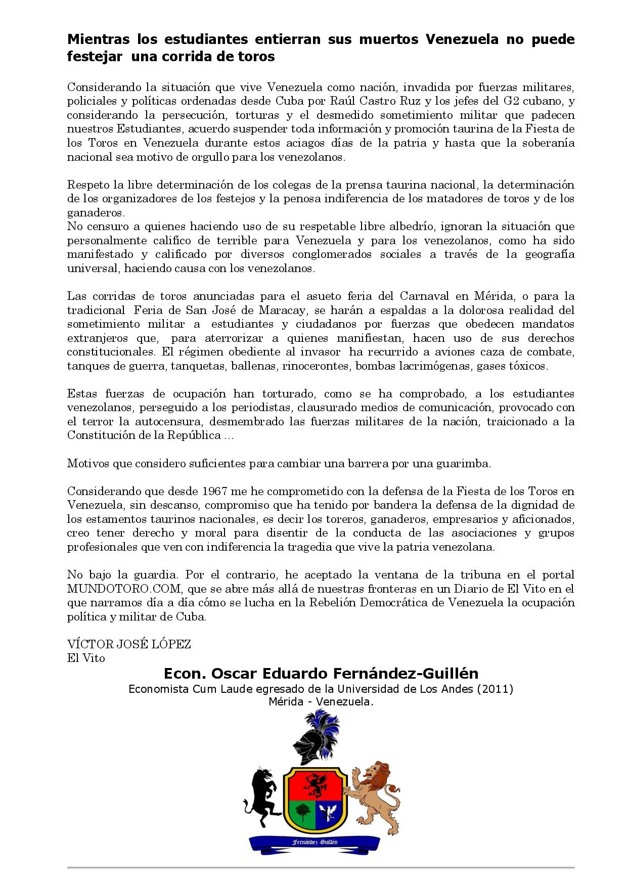 Mientras los estudiantes entierran sus muertos, Venezuela no puede festejar una corrida de toros