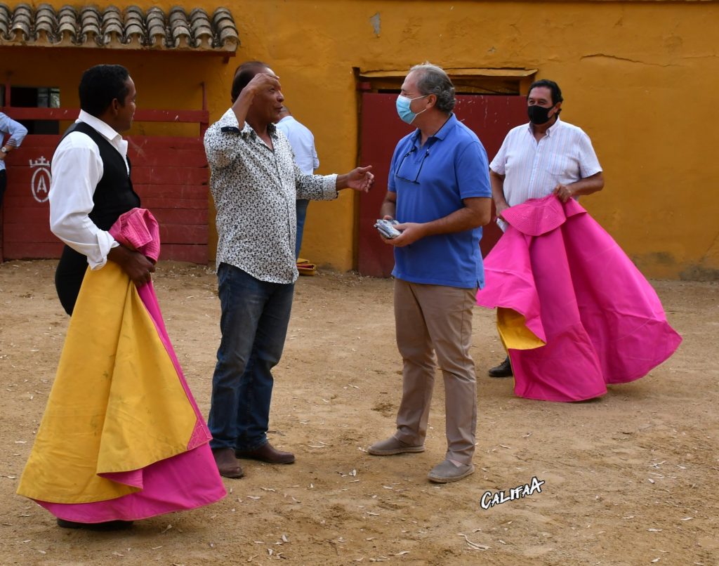 En la legendaria ganaderia del Marques de Albaserrada, ubicada en el bonito y muy taurino pueblo de Gerena ( Sevilla ), fue escenario del reencuentro de 2 grandes Figuras del Toreo los Maestros Jose Nelo » Morenito de Maracay » y Tomas Campuzano toreros que han compartido muchas tardes gloriosas en todo el orbe taurino, pero en especial en esa Venezuela taurina en donde son 2 autenticos idolos. Igualmente compartio cartel el matador Califa de Aragua. Este escuentro fue gracias a la invitacion del torero Venezolano Javier Silva radicado en gerena, quien cumplia año y gracias a la amistad que les une con los maestros Morenito,Tomas y Califa, se le brindo un bonito homenaje taurino, con la colaboracion y gentileza del Mayoral de la Finca Fabrice Torito y la señora Marquesa de Albacerraceda. Se realizo un tentadero, y por colleras MORENITO Y TOMAS dieron catedra taurina en donde los presentes disfrutamos del toreo de Antaño. Igualmente por Colleras torearon Javier Silva y Califa de Aragua en donde disfrutaron con las buenas embestidas de las vacas de Albaserrada. En ultimo lugar torio el becerrista Daniel Fernandez quien atesora un toreo artistico, es el pupilo del maestro Tomas Campuzano.