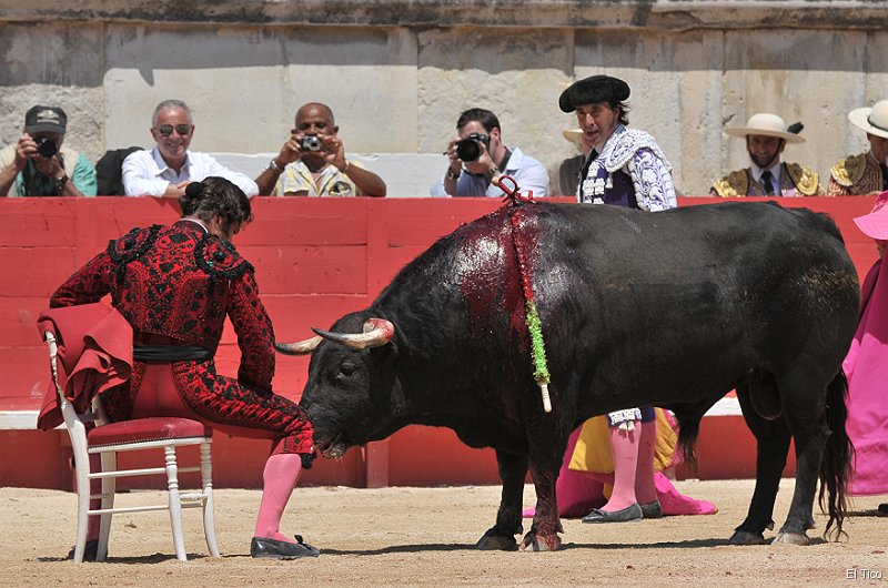 Morante de la Puebla por fin ha entrado de lleno en el corazón de la afición nimeña. Habrá sido necesario esperar algunos añitos y siete toros para lograrlo. Decidido, el sevillano se ha visto con ganas de agradar en cada uno de sus astados, exprimiendo al máximo las posibilidades de sus dos primeros y cortando una oreja de peso del primero. Pero fue en el último que aconteció el milagro. El de la Puebla se percató de las cualidades del toro y tras un estilado recibo capotero a la verónica inició el trasteo de muleta sentado en una silla para proseguir mano baja y abandonado a una inspiración que puso la plaza al rojo vivo. Olés profundos de júbilo hasta el silencio sepulcral mientras cuadraba al astado y todo el mundo se fue tras la espada. Era faena de rabo, Nimes moría de ganas de entregárselo, y se lo llevó.