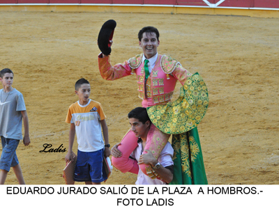 Eduardo Jurado: media estocada delantera y tendida(oreja) y dos pinchazos y estocada (oreja).