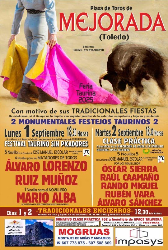 El joven espada de Táriba, Venezuela , se ha ganado su lugar en la Feria Taurina 2025 de Mejorada, donde compartirá cartel el martes 2 de septiembre en una clase práctica con Óscar Sierra, Raúl Caamaño y Rubén Vara. El evento, servirá como una plataforma de formación y exhibición para estos jóvenes valores, en el marco de las tradicionales fiestas locales.