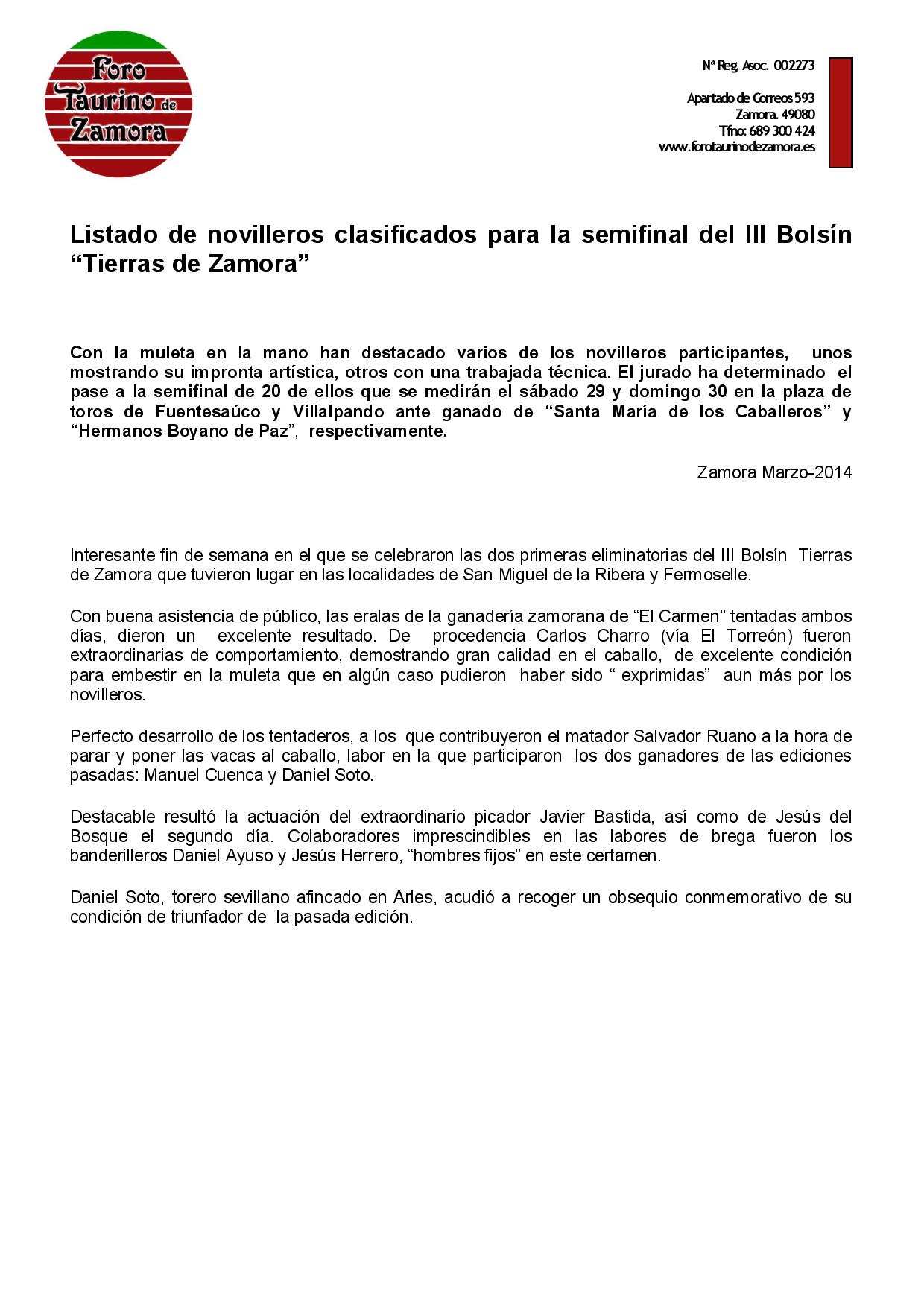 Novilleros clasificados para la semifinal del III Bolsín Tierras de Zamora