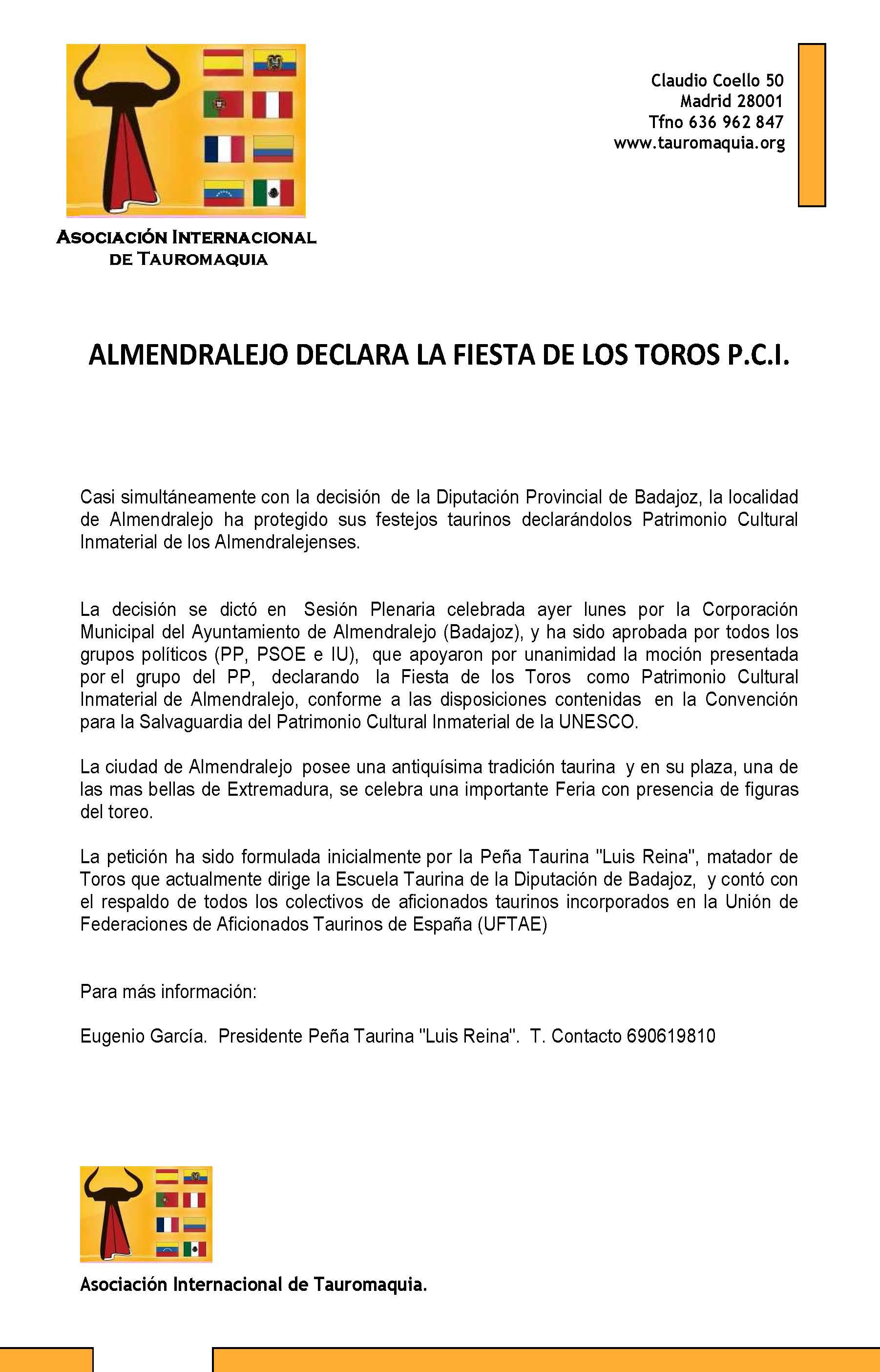 Nueva declaración de Patrimonio Cultural Inmaterial aprobada en Almendralejo, Badajoz