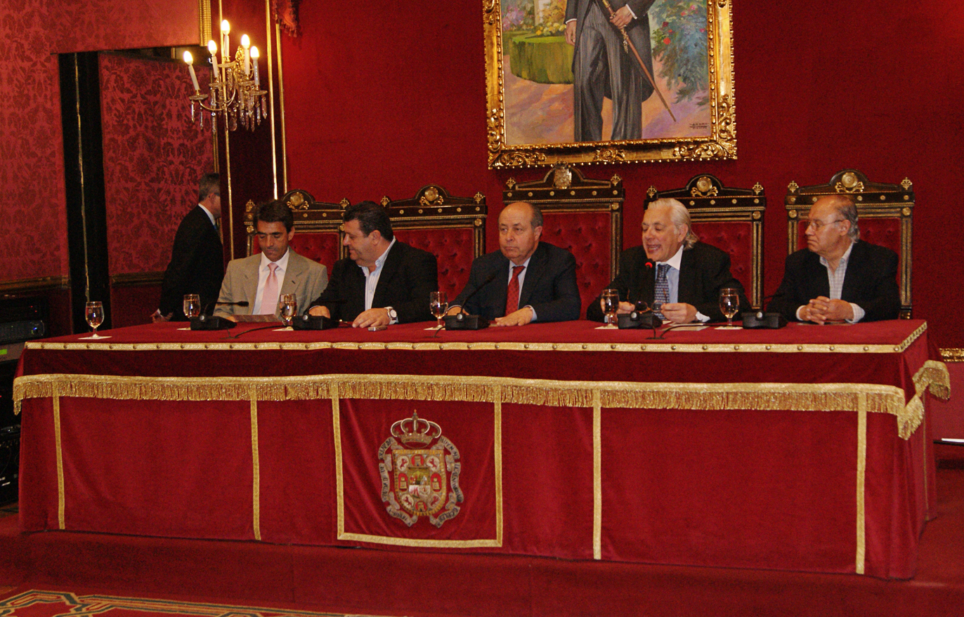 Han presidido el acto el alcalde de la ciudad Torres Hurtado, el empresario José Jesús Cañas, el catedrático José Luis Pérez Serrabona, el cual ha iniciado la presentación, el ganadero Victorino Martín hijo y Salvador Fernández Fábregas.