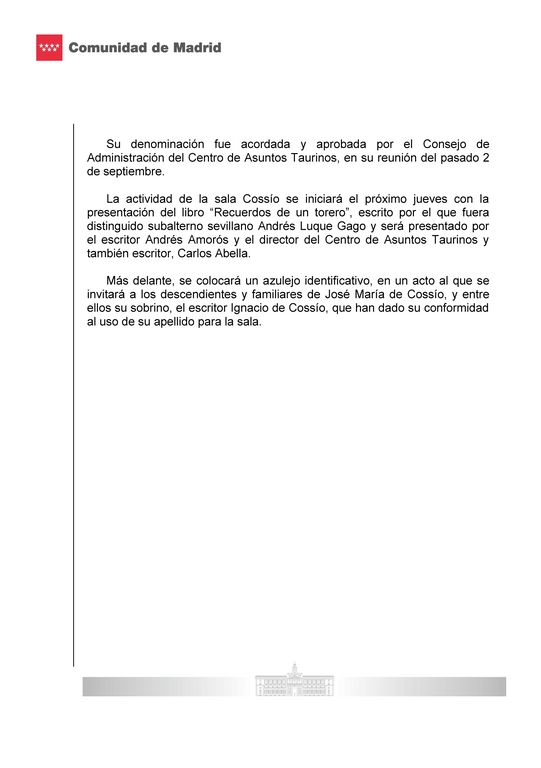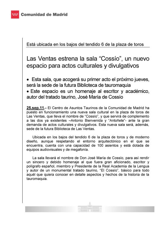 Nueva Sala Cossío en Las Ventas