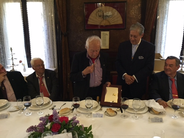 El pasado día 28 de abril, los miembros de la Orden del Torsón de Santiago celebraron un almuerzo en el restaurante Lhardy, en homenaje a nuestro querido amigo e insigne escultor D. Santiago de Santiago (Escalera del Éxito 92).