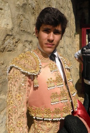 Alejandro Jiménez, de la Escuela de Tauromaquia de Sevilla, salió a por todas en el tercero y se fue a portagayola para luego rematar el recibo por verónicas muy bien ejecutadas. Jiménez brindó su faena al público antes de comenzar el trasteo de rodillas en el centro del ruedo.